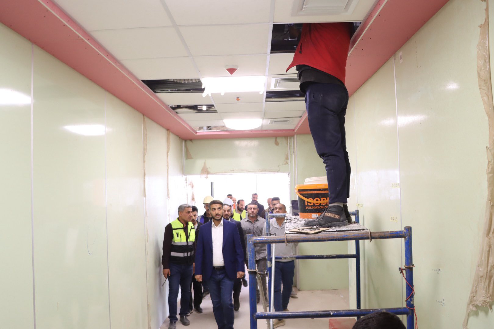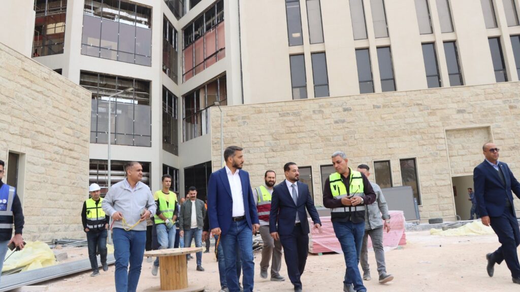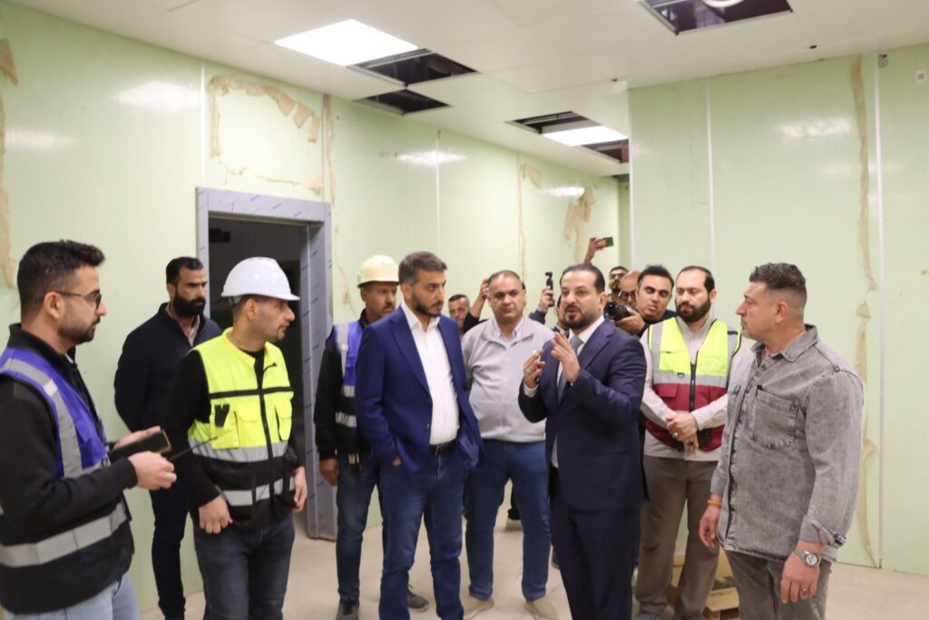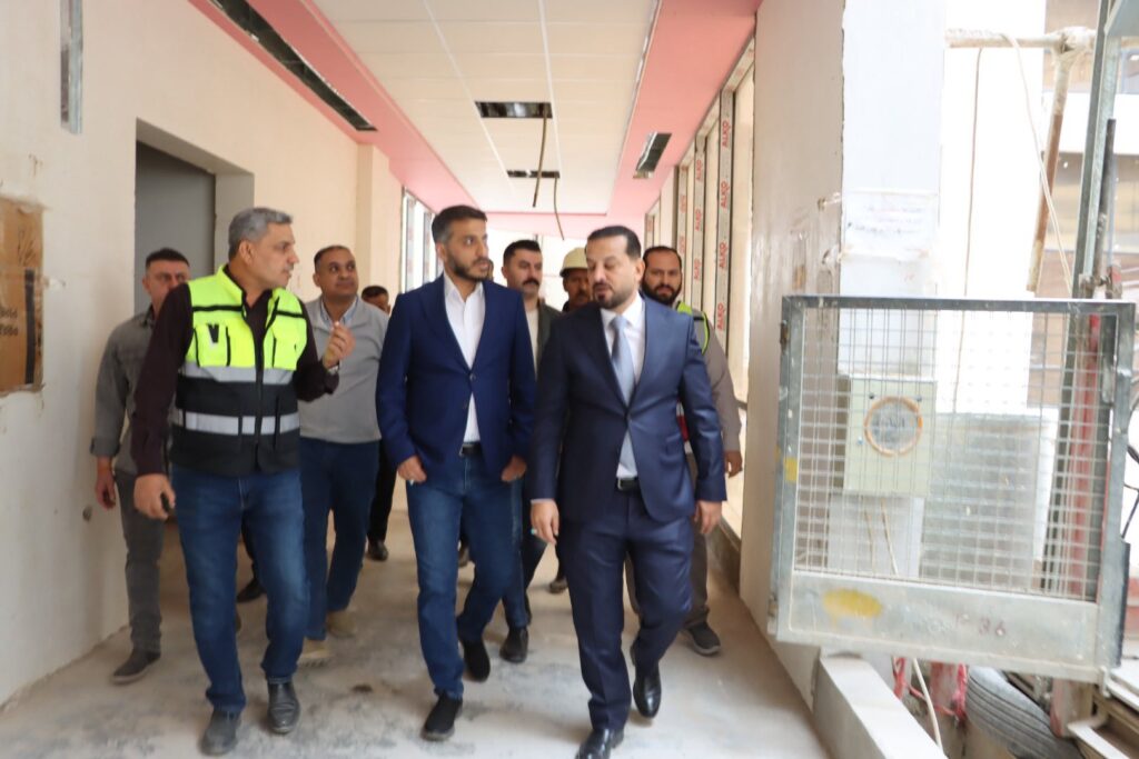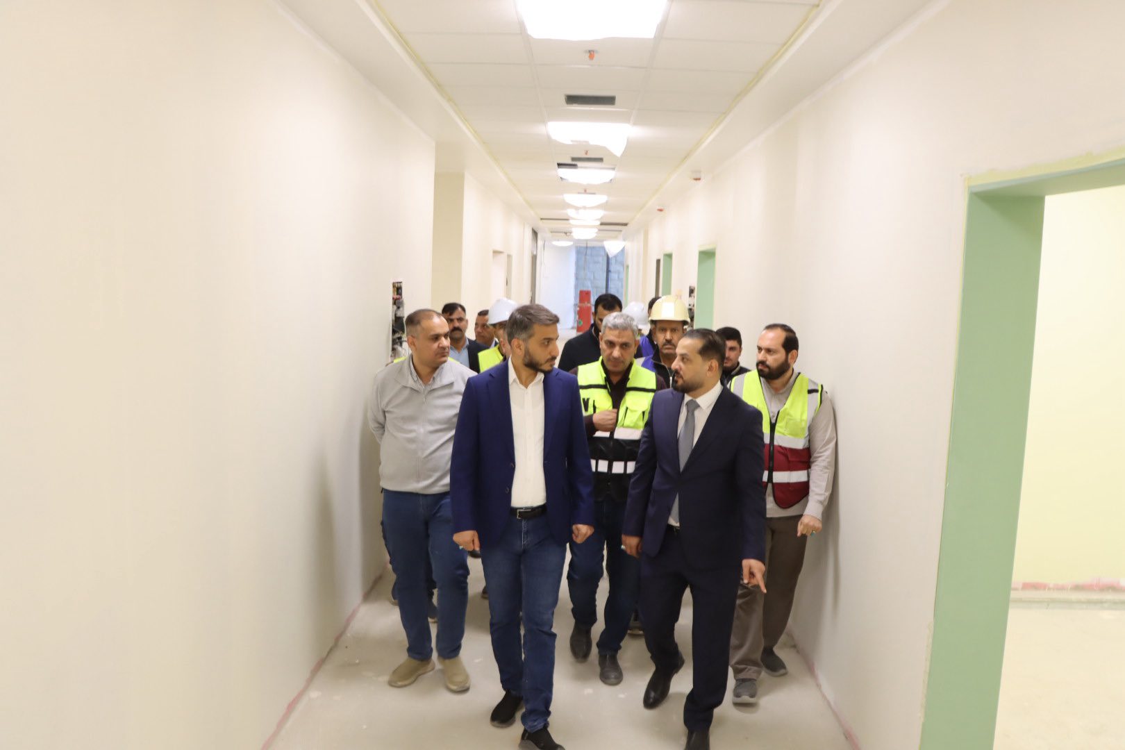 The Governor of Najaf, Eng. Youssef Ganawi, conducted a field visit to the Al-Hakim General Hospital project, accompanied by Director General Dr. Abdullah Al-Ghazali, to review the implementation stages and current progress. The tour included inspecting the construction works and reviewing the equipment being prepared in line with the medical nature of the project.