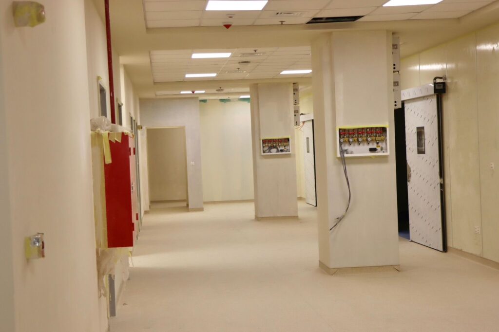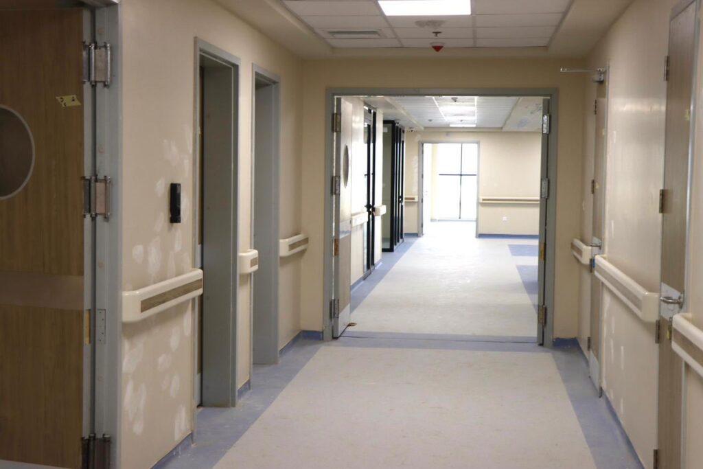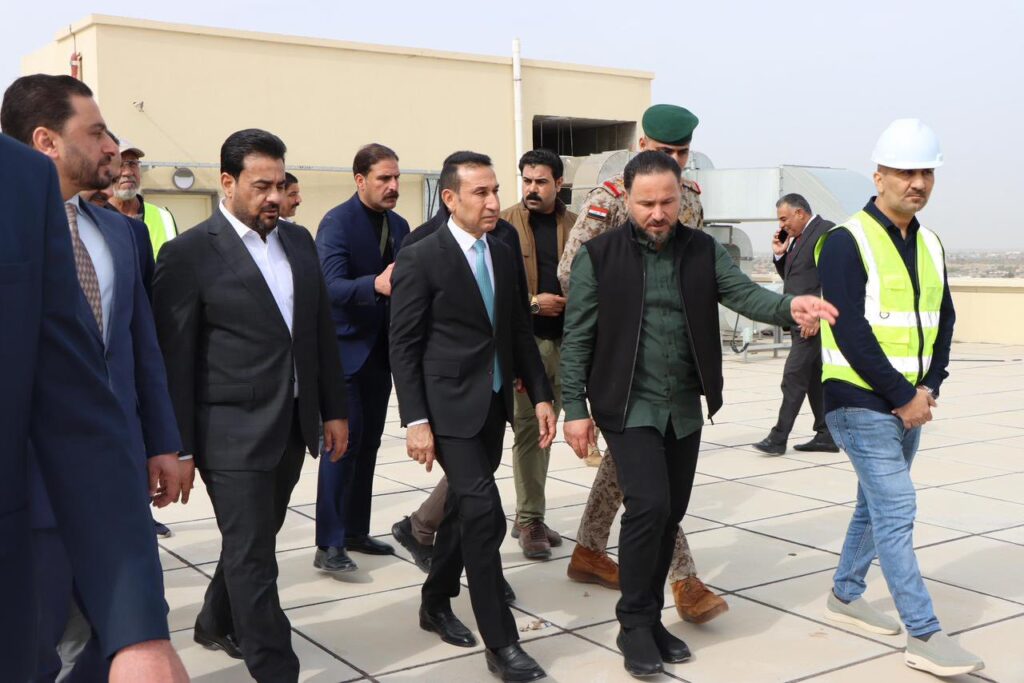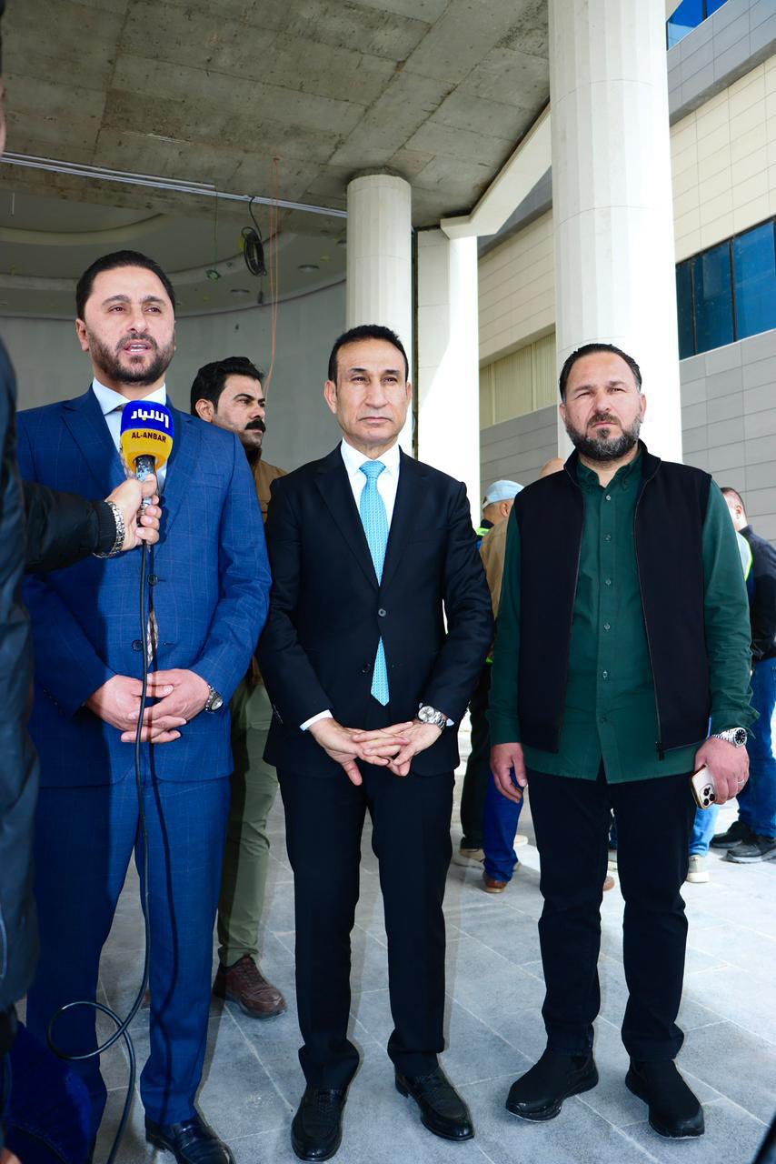 Omar Mishaan Dabbous, Governor of Anbar Governorate, accompanied by the Director General of Anbar Health Directorate, Dr. Khudair Khalaf Shalal, conducted an inspection visit on Monday, 9 February 2026, to the New Al‑Garmah District Hospital project with a capacity of 100 beds, which has reached an advanced stage of construction with an overall completion rate of 89%.