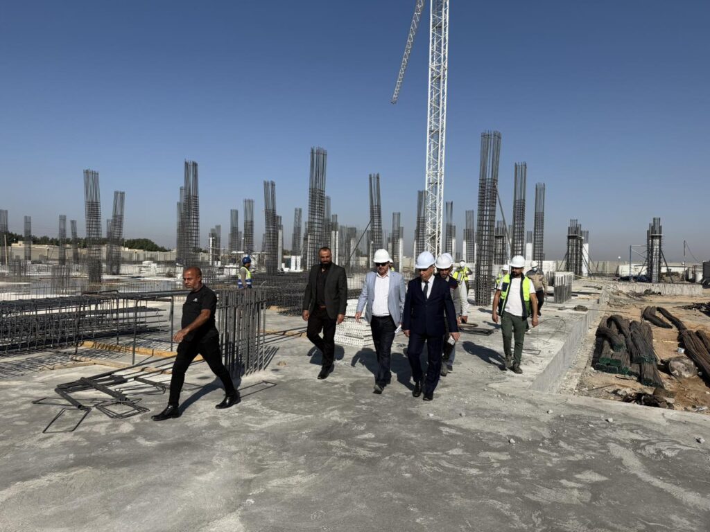 The raft foundation for all buildings has also been completed, and work has begun on the concrete columns of the ground floor, in addition to reinforcing the walls of the service building’s basement—marking a significant advancement in the structural progress of the project.