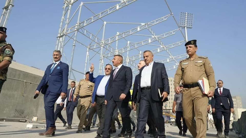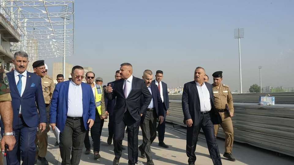 Iraqi Minister of Interior Abdil Ameer Al-Shimmary and President of the Iraqi Football Association Adnan Dirjal visited the Al-Shorta Sports Club Stadium to follow up on the progress of work ahead of its official inauguration.
